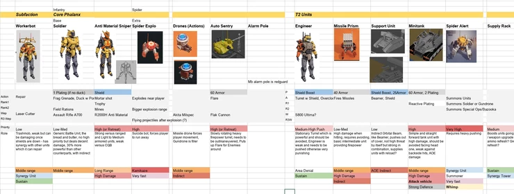 Knowing each factions strengths and weaknesses, technology affinities, roles and stylistic choices is the culmination of the last 5 years of work. This required a lot of hard thinking and many months of excel, mapping things out in a huge spider web that felt exactly like this: